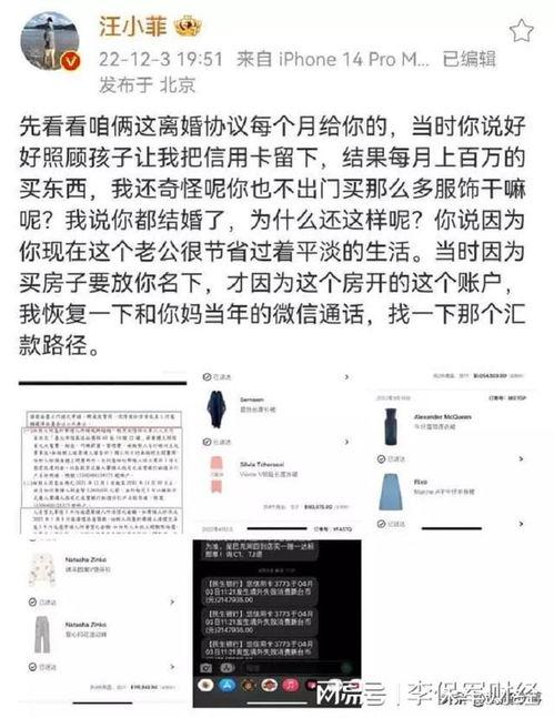 最近,汪小菲在社交媒体上发布了一系列爆料,让粉丝们大呼过瘾。以下是他的部分爆料内容: